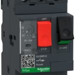 Автомат захисту двигуна Schneider GV2ME22 20-25A призначений для включення/відключення та захисту асинхронних електродвигунів 11кВт 380V змінного струму та захисту від струмів коротких замикань та перевантажень. Захист спрацьовує при перенавантаженні, обриву фази, затягнутого пуску та короткого замикання в колах змінного струму частотою 50Гц напругою до 400В.