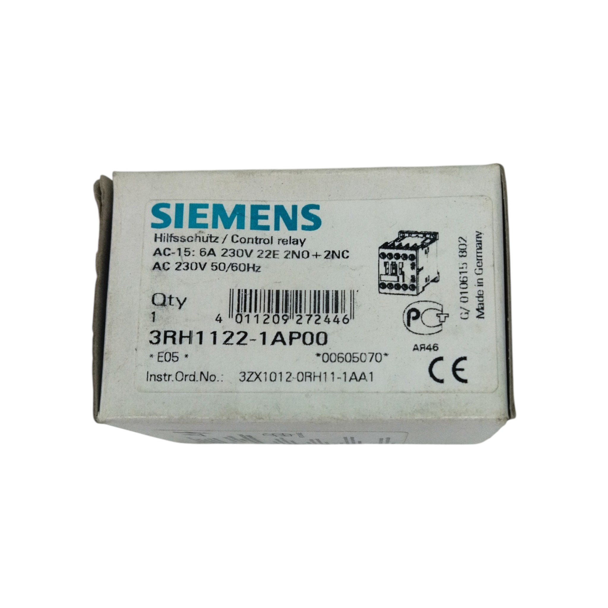 Контакторне реле Siemens 3RH1122-1AP00, 6А 220V AC, 2NC+2NO є надійним компонент для керування схемами автоматики, панелей управління та верстатів — відповідає міжнародним стандартам (IEC/EN)