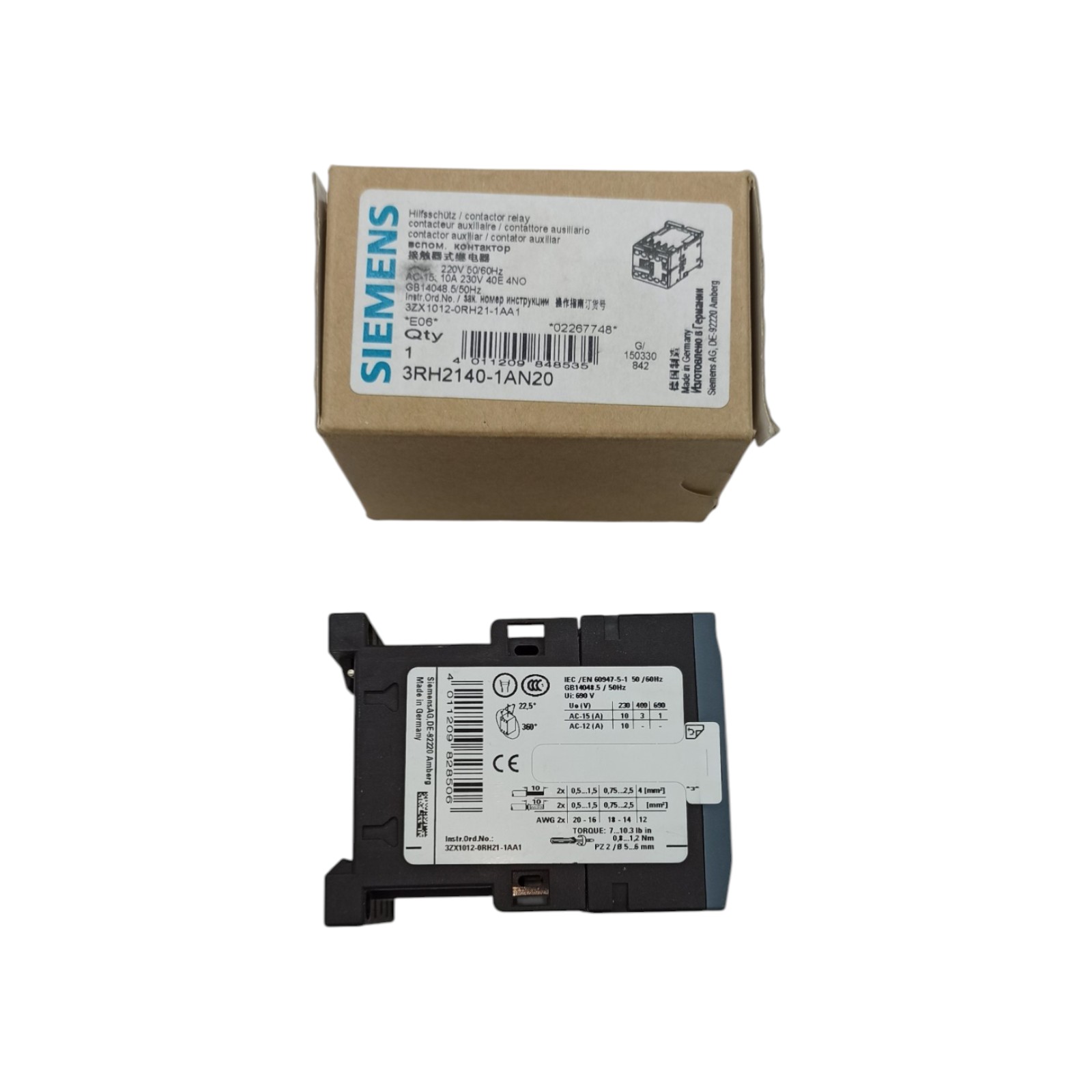 Контакторне реле Siemens3RH1122-1AP00, 6А 220V AC, 2NC+2NO є надійним компонент для керування схемами автоматики, панелей управління та верстатів — відповідає міжнародним стандартам (IEC/EN)