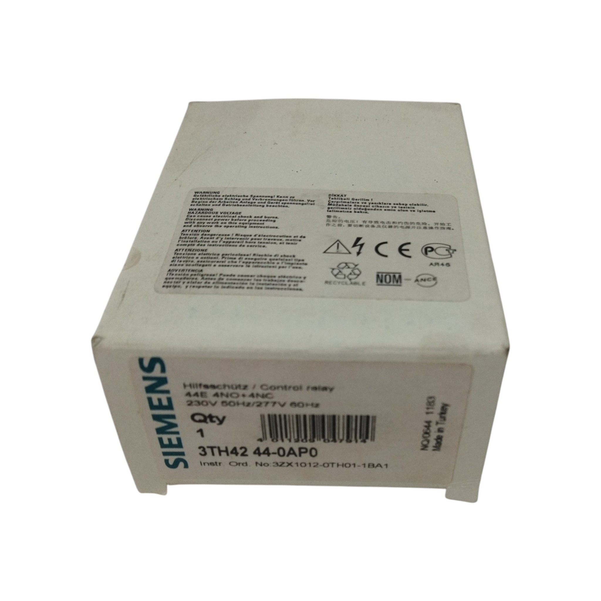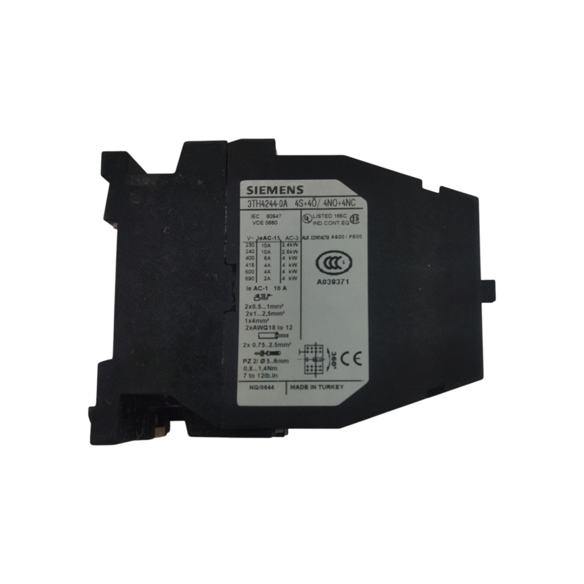 Контакторне реле Siemens 3TH4244-0AP0, 10А 220V AC, 4NO,4NC є надійним компонент для керування схемами автоматики, панелей управління та верстатів — відповідає міжнародним стандартам (IEC/EN)