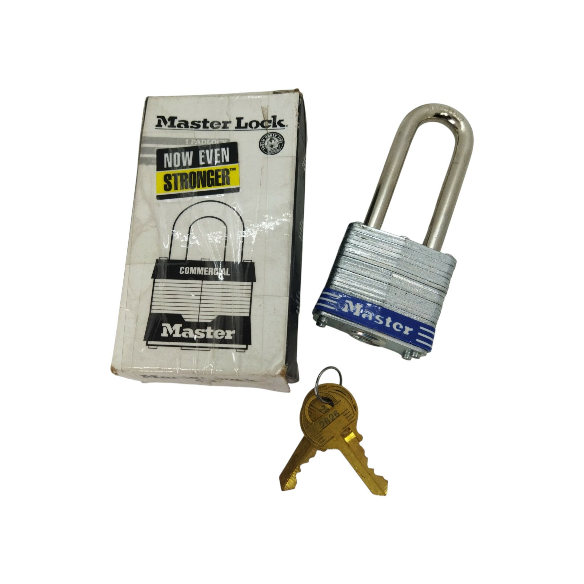 Замок сталевий пластинчастий Master Lock 3LHBLU— це вже більш “професійна”  з довгою дужкою і підвищеною міцністю.