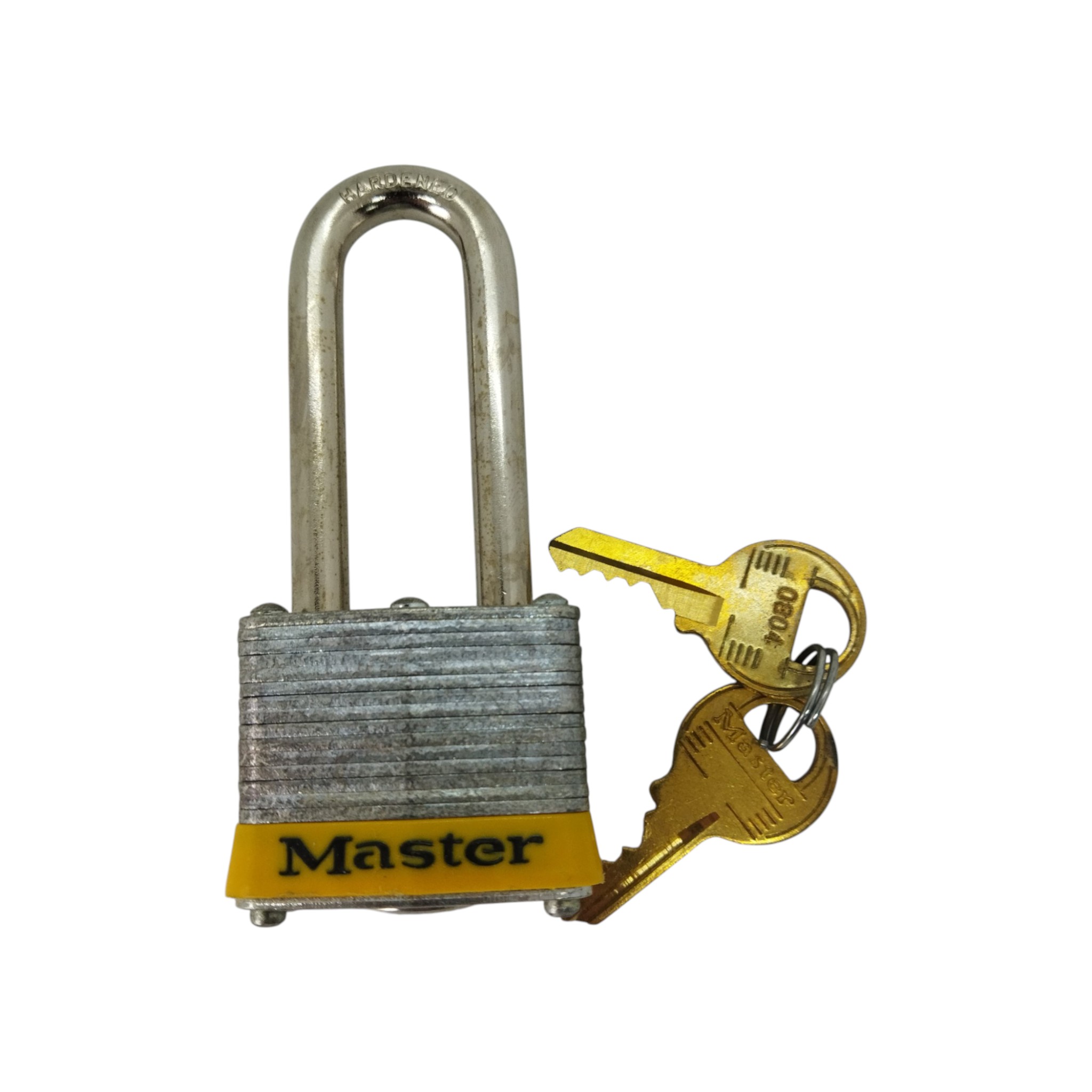 Замок сталевий пластинчастий Master Lock 3LHYLW (жовтий) — це вже більш “професійна” версія серії №3 з довгою дужкою (LH = long shackle) і підвищеною міцністю.